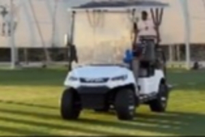 視頻顯示,亞馬爾在巴薩的甘伯體育城訓(xùn)練基地,駕駛著一輛高爾夫球車在訓(xùn)練場(chǎng)上行駛。