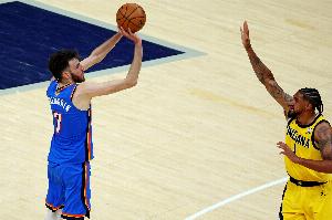 體育資訊10月24日訊 NBA常規(guī)賽,雷霆半場54-47領(lǐng)先步行者。