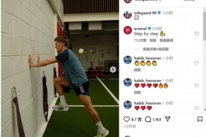 厄德高在10月4日對(duì)陣西漢姆的比賽中膝蓋內(nèi)側(cè)副韌帶受傷,他在社交媒體上曬出康復(fù)訓(xùn)練的照片,這位阿森納中場(chǎng)正在努力恢復(fù),希望盡快復(fù)出幫助球隊(duì)。