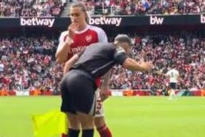 體育資訊09月14日訊 本輪英超阿森納3-0完勝諾丁漢森林,比賽中有球迷在場(chǎng)邊拍到了滑稽的一幕。
