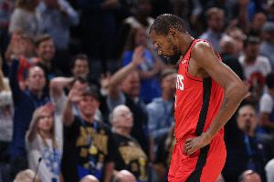 比賽最后幾分鐘的大部分進(jìn)攻回合,火箭都是由杜蘭特負(fù)責(zé)持球推進(jìn)。每一次他持球,現(xiàn)場(chǎng)18055名觀眾都會(huì)起身歡呼,為這位球隊(duì)新核心得分手喝彩,杜蘭特也注意到了這一點(diǎn)。