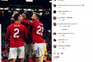 盧克-肖也在賽后通過(guò)社媒曬出和隊(duì)友的相擁慶祝照,并配文:“讓我們延續(xù)當(dāng)前的勢(shì)頭!”