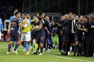 “我接受采訪是因?yàn)槲蚁M麨檎麄€(gè)體系做出的貢獻(xiàn),因?yàn)槲覍?shí)在無(wú)法理解這個(gè)點(diǎn)球。拋開(kāi)那不勒斯理應(yīng)獲勝這一點(diǎn),他們?cè)谧詈蟀胄r(shí)確實(shí)證明了這一點(diǎn)。那個(gè)點(diǎn)球源于助理裁判的判斷,比賽中有時(shí)候是VAR介入,有時(shí)候是助理裁判推翻原本站位極佳的主裁判。但這次主裁判第一時(shí)間并沒(méi)有吹罰點(diǎn)球,他的位置無(wú)可挑剔。這種情況本應(yīng)交由VAR處理,而從那一刻起,比賽走向變得微妙。隨后那不勒斯用表現(xiàn)證明了勝利,他們?nèi)σ愿?,向勝者致敬?!?/p>
