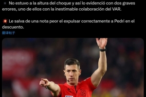 西媒Archivo VAR在賽后為本場比賽主裁判格拉多打分:“災難級表現(xiàn),2.5分?!?/p>