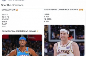 賽后美媒露天看臺曬出了里夫斯的數(shù)據(jù)但沒寫上罰球數(shù)據(jù),而此前亞歷山大對步行者砍下55分的比賽數(shù)據(jù)卻有寫上罰球,雷霆隨隊(duì)記者Clemente Almanza對此寫道:“發(fā)現(xiàn)了區(qū)別。”