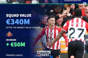 體育資訊10月27日訊 《轉(zhuǎn)會(huì)市場(chǎng)》在近日已經(jīng)更新了五大聯(lián)賽球隊(duì)身價(jià),他們也據(jù)此列出了各大聯(lián)賽最新身價(jià)更新后的身價(jià)(歐元)上漲和下降最多的球隊(duì)。