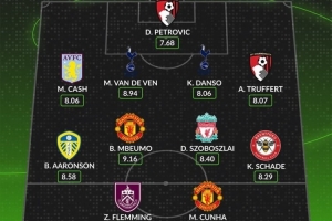 后衛(wèi):卡什(阿斯頓維拉,8.06分)、范德芬(熱刺,8.94分)、丹索(熱刺,8.06分)、阿德里安-特呂費(fèi)爾(伯恩茅斯,8.07分)