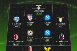 中場:薩勒馬科爾斯(AC米蘭,8.15分)、亞瑟-阿塔(烏迪內(nèi)斯,8.29分)、安古伊薩(那不勒斯,8.20分)、尼古拉·坎比亞吉(博洛尼亞,7.49分)