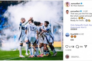體育資訊10月28日訊 美職聯(lián)季后賽第一輪首場比賽,穆勒點(diǎn)射破門,溫哥華白浪主場3-0擊敗達(dá)拉斯FC,占據(jù)晉級先機(jī)。