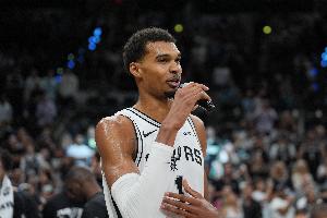 上半場比賽,文班亞馬出戰(zhàn)15分30秒,投籃2中2,罰球6中6,得到10分8籃板2助攻2搶斷,正負值+29。