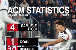 米蘭官方社媒曬出里奇本場比賽的數(shù)據(jù),他出場97分鐘打進(jìn)1球,跑動距離12公里,傳球成功率97%,完成4次解圍。