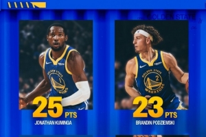 在昨日的比賽中,勇士在主場(chǎng)131-118擊退來(lái)訪的灰熊。這場(chǎng)比賽,勇士有四個(gè)人得分上20,其中巴特勒20分、庫(kù)明加25分、波杰姆斯基23分、穆迪20分;而值得一提的是,這場(chǎng)比賽庫(kù)里僅11次出手拿到16分,出戰(zhàn)時(shí)間只有29分42秒。