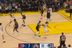 GIF-庫明加擊地妙傳助庫里上籃得分