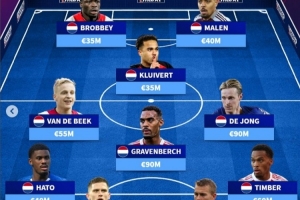 體育資訊10月30日訊 《轉(zhuǎn)會市場》統(tǒng)計了阿賈克斯現(xiàn)役青訓(xùn)球員的巔峰身價情況,并列出一套最貴陣。