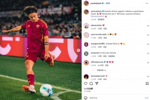 迪巴拉也在賽后通過社媒曬出自己的比賽照,并紀念道:“太棒了,伙計們!讓我們繼續(xù)努力前進?????? 非常高興拿到第100次助攻……謝謝兄弟@埃爾莫索 ??”