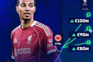 埃基蒂克目前身價(jià)7500萬(wàn)歐,他在今夏以9500萬(wàn)歐的轉(zhuǎn)會(huì)費(fèi)加盟利物浦,并且在賽季初表現(xiàn)不俗。德轉(zhuǎn)給出?;倏烁潞蟮纳韮r(jià)選項(xiàng)分別有8000萬(wàn)歐、9000萬(wàn)歐以及1億歐。