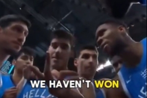 體育資訊9月10日訊 男籃歐錦賽1/4決賽,希臘87-76力克立陶宛挺進(jìn)四強(qiáng),賽后字母哥在場(chǎng)邊提醒并鼓勵(lì)隊(duì)友。