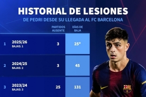 體育資訊10月30日訊 巴薩中場佩德里左側(cè)大腿遠(yuǎn)端股二頭肌撕裂,德國轉(zhuǎn)會市場更新社媒動(dòng)態(tài),盤點(diǎn)佩德里加盟巴薩以來每個(gè)賽季的傷病情況。
