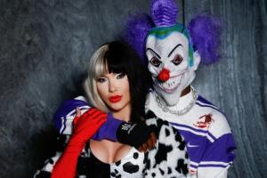 維尼修斯打扮成紫色的小丑,女友弗吉尼亞則cos了迪士尼動(dòng)畫《101忠狗》中的經(jīng)典反派角色庫伊拉,一同出cos的還有她與前夫的三個(gè)孩子。