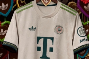 這款新球衣靈感來源于年初慶祝俱樂部成立125周年的紀(jì)念球衣,融合了巴伐利亞的價(jià)值觀和現(xiàn)代優(yōu)雅:高貴的米白色、綠色刺繡袖口以及類似于125周年紀(jì)念球衣的結(jié)構(gòu),使其成為傳統(tǒng)與獨(dú)特性的完美結(jié)合,是所有拜仁球迷的真正宣言。