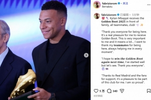 姆巴佩也發(fā)表了獲獎(jiǎng)感言:"感謝大家的到來(lái)。能夠贏得(歐洲)金靴獎(jiǎng),對(duì)我而言是莫大榮幸,也意義非凡……我要感謝我的隊(duì)友們,感謝他們一直陪伴在我的身邊,始終給予我支持。"