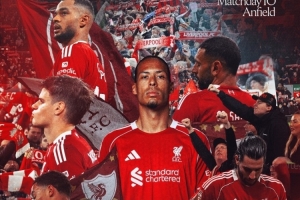 利物浦官方社媒發(fā)布了此役的海報(bào),范戴克、埃基蒂克、薩拉赫、索博斯洛伊、加克波、凱爾凱茲出鏡。
