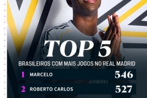 維尼修斯追平卡塞米羅,成為皇馬隊史出戰(zhàn)比賽第3多的巴西球員,位居他身前的是馬塞洛(546場)以及卡洛斯(527場),羅德里戈以281場位居第5。