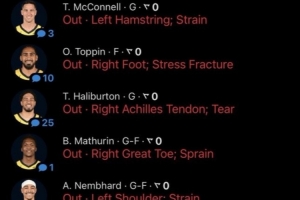 這場比賽堪稱超級殘陣,一共起名球員缺陣,分別是哈利伯頓、馬瑟林、托平、內(nèi)姆哈德、麥康納、卡梅隆-瓊斯和麥克朗。