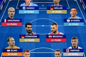 前鋒:蘇亞雷斯(烏拉圭,37歲)、穆勒(德國(guó),34歲)