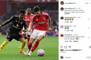 體育資訊11月2日訊 英超第10輪比賽,內(nèi)科-威廉姆斯踢滿全場,幫助諾丁漢森林主場2-2戰(zhàn)平曼聯(lián)。