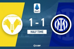 傷停補(bǔ)時2分鐘。上半場比賽結(jié)束,國際米蘭1-1維羅納。