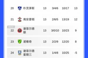 體育資訊11月02日訊 英冠目前已經(jīng)進行了13輪,目前蘭帕德執(zhí)教的考文垂積28分,領跑積分榜。
