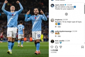 體育資訊11月3日訊 2025-26賽季英超第10輪,曼城3-1戰(zhàn)勝伯恩茅斯。賽后,本場(chǎng)比賽送出2次助攻的謝爾基在社交媒體慶祝球隊(duì)獲勝。