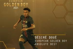 體育資訊11月04日訊 金童獎(jiǎng)官方宣布,20歲的巴黎前鋒杜埃榮膺2025年金童獎(jiǎng),擊敗了居萊爾、赫伊森、庫巴西等候選球員。