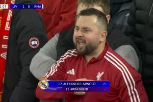 登場(chǎng)時(shí),阿諾德遭到了紅軍球迷的“熱烈歡迎”:安菲爾德噓聲四起,鏡頭給到的一位球迷向他手指著胸前的利物浦隊(duì)徽,口中念念有詞,隨后這位球迷還低頭親吻了隊(duì)徽。