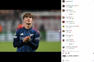 本場比賽15歲道曼替補(bǔ)登場,成為歐冠歷史出場最年輕球員,賽后他也在社媒曬出本場照片,配文寫道:“歐冠首秀!”