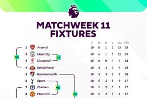 體育資訊11月07日訊 本周末將迎來英超第11輪的較量,賽前英超官方用一張圖表清晰展示了本輪交手各隊(duì)的名次對比。