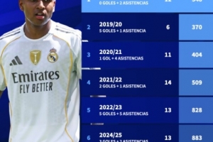 體育資訊11月8日訊 盡管皇馬主帥阿隆索多次在新聞發(fā)布會(huì)上強(qiáng)調(diào)羅德里戈是球隊(duì)陣中重要一員,但數(shù)據(jù)卻顯示了完全不同的情況。在進(jìn)攻端,只有恩德里克和貢薩洛-加西亞比他出場(chǎng)時(shí)間更少。事實(shí)上,這是他加盟皇馬以來(lái)前15場(chǎng)比賽出場(chǎng)時(shí)間最少的一個(gè)賽季。
