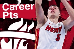 目前,約維奇已經(jīng)得到10分,個(gè)人生涯總得分突破1000大關(guān),這是他生涯第116場(chǎng)比賽。