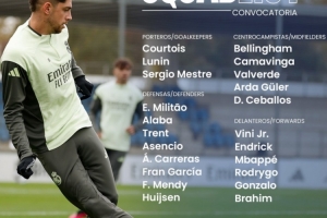 體育資訊11月8日訊 本輪西甲皇馬將在客場對陣巴列卡諾,球隊官方也公布了本場大名單,瓊阿梅尼缺席,具體如下: