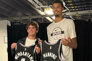 本場比賽,德克薩斯大學(xué)橄欖球隊球員阿奇·曼寧等人現(xiàn)場觀看了本場比賽,并受到了文班亞馬及福克斯的接待。星三代阿奇·曼寧還和文班互換了球衣。