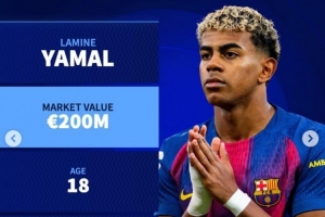 體育資訊11月9日訊 《轉(zhuǎn)會(huì)市場》統(tǒng)計(jì)了16歲到25歲的各年齡最高身價(jià)情況,18歲亞馬爾2億歐居首。