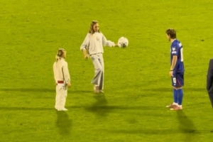 迎來(lái)40歲生日的莫德里奇本場(chǎng)比賽之后留在場(chǎng)上,與自己的兩個(gè)女兒顛球互傳,從視頻中看,莫德里奇的大女兒顛球熟練。