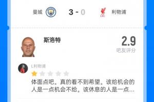 凌晨英超第11輪焦點戰(zhàn),利物浦0-3不敵曼城,近6輪英超吞下5場敗仗。利物浦主帥斯洛特本場的戰(zhàn)術安排,以及不換下薩拉赫的決定再次遭到球迷指責,吧友們給他打出了2.9分的超低分。