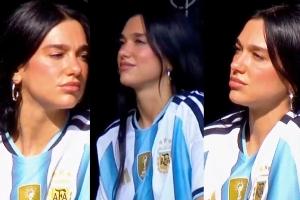 正在阿根廷布宜諾斯艾利斯舉行演唱會(huì)的啪姐Dua Lipa現(xiàn)場(chǎng)觀戰(zhàn)博卡青年vs河床的比賽,身著阿根廷最新國家隊(duì)?wèi)?zhàn)袍,并與里克爾梅合影。