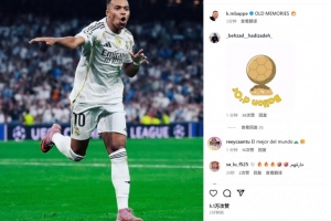 姆巴佩也在賽后曬出自己的慶祝照,并配文:“舊日的記憶。”