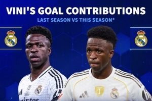體育資訊11月11日訊 德國(guó)轉(zhuǎn)會(huì)市場(chǎng)統(tǒng)計(jì)了維尼修斯上賽季和本賽季的數(shù)據(jù),這位皇馬前鋒的效率有所下滑。