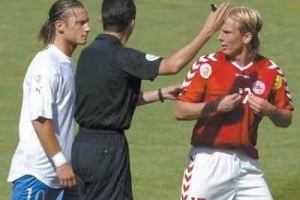 在2004年歐洲杯首輪小組賽,意大利0-0戰(zhàn)平丹麥。比賽中托蒂多次被犯規(guī)后失去冷靜,對(duì)丹麥球員鮑爾森吐口水。賽后托蒂被追加禁賽3場(chǎng),而意大利也在隨后的小組賽未能出線。托蒂成為了意大利從歐洲杯出局的最大責(zé)任人。