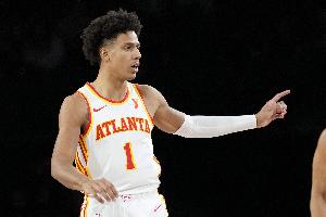 老鷹球星杰倫·約翰遜本場比賽出戰(zhàn)40分鐘,19投10中,三分5中4,罰球11中7,爆砍31分18籃板14助攻7搶斷的全能數(shù)據(jù)。