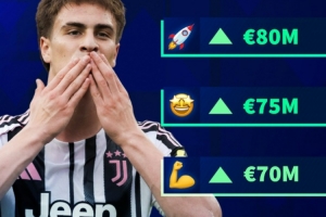 20歲的伊爾迪茲目前身價5000萬歐,德轉(zhuǎn)給出的下次更新身價分別有6000萬歐、7000萬歐、7500萬歐以及8000萬歐。